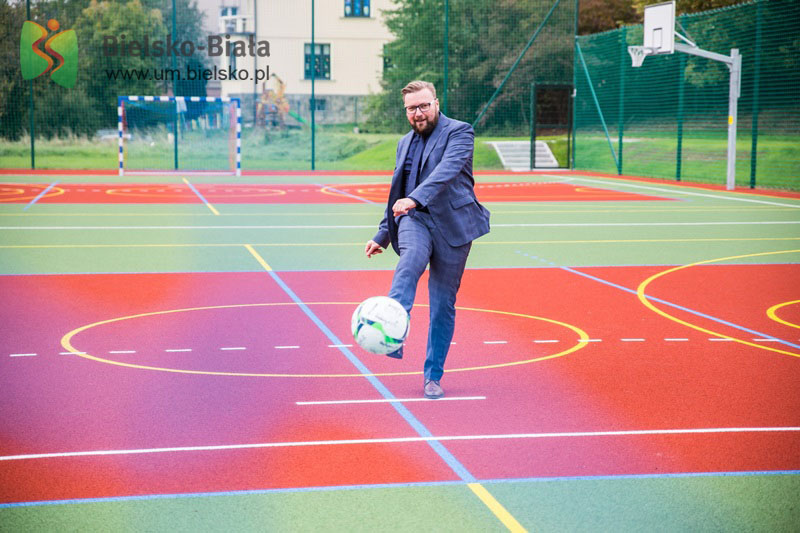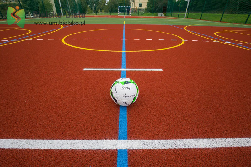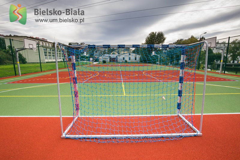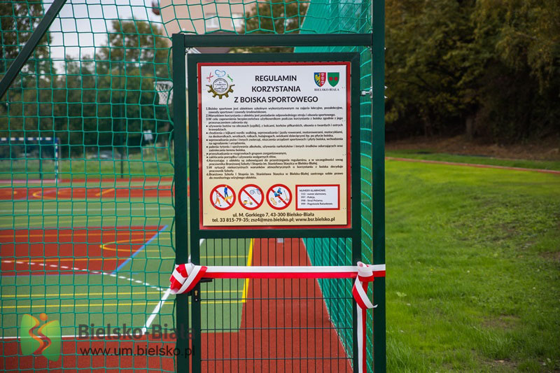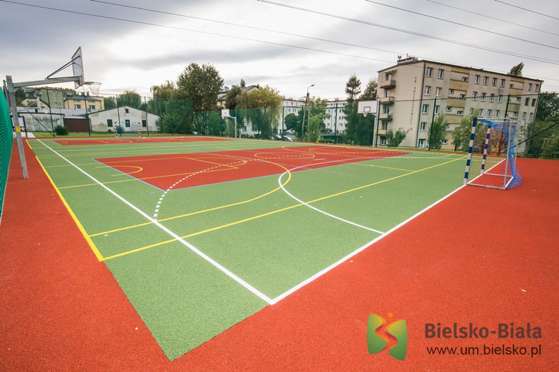 Obiekt powstał w ramach programu pn. „Modernizacja boisk sportowych  zlokalizowanych przy placówkach oświatowych w Bielsku-Białej".