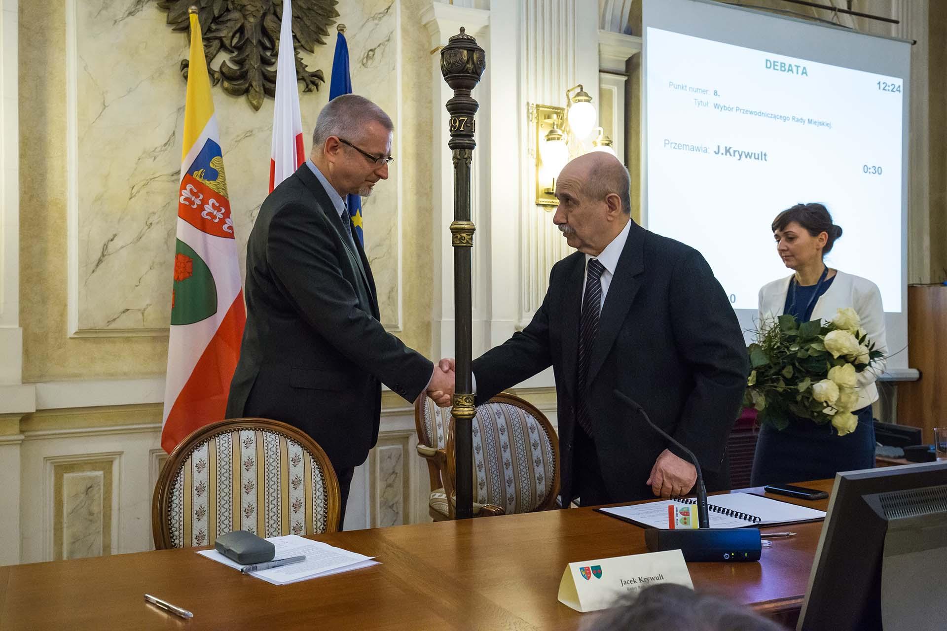 Odchodzący prezydent Jacek Krywult, pełniący również funkcję prowadzącego obrady Rady Miejskiej, jako najstarszy wiekiem radny, powiedział: