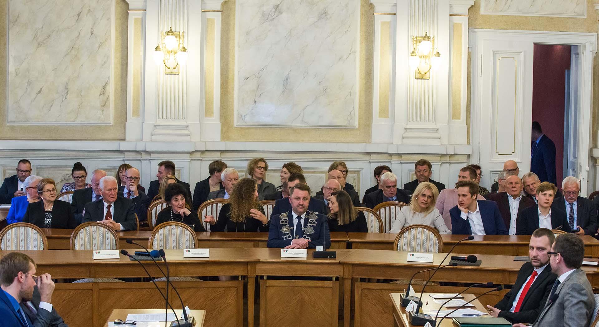 - Będę starał się jako przewodniczący, łączyć energię tej rady jak najmocniej, tak, żeby stała się ona żywym miejscem dyskusji, myślę że nieraz sporów, konfrontacji różnych idei i pomysłów, żeby aż kipiało energią na tej sali, żeby jak najmniej przypominała sejm, który staje się już tylko takim pustym rytuałem. Żebyśmy (...) jak najczęściej starali się dorównać naszym poprzednikom w tej (...) Radzie Miejskiej, tym z końca XIX wieku, czyli złotego okresu dla naszego miasta, i tym z końca XX wieku, z lat 90., pierwszych lat odrodzonej samorządności po odzyskaniu przez Polskę niepodległości - mówił przewodniczący RM Janusz Okrzesik.
