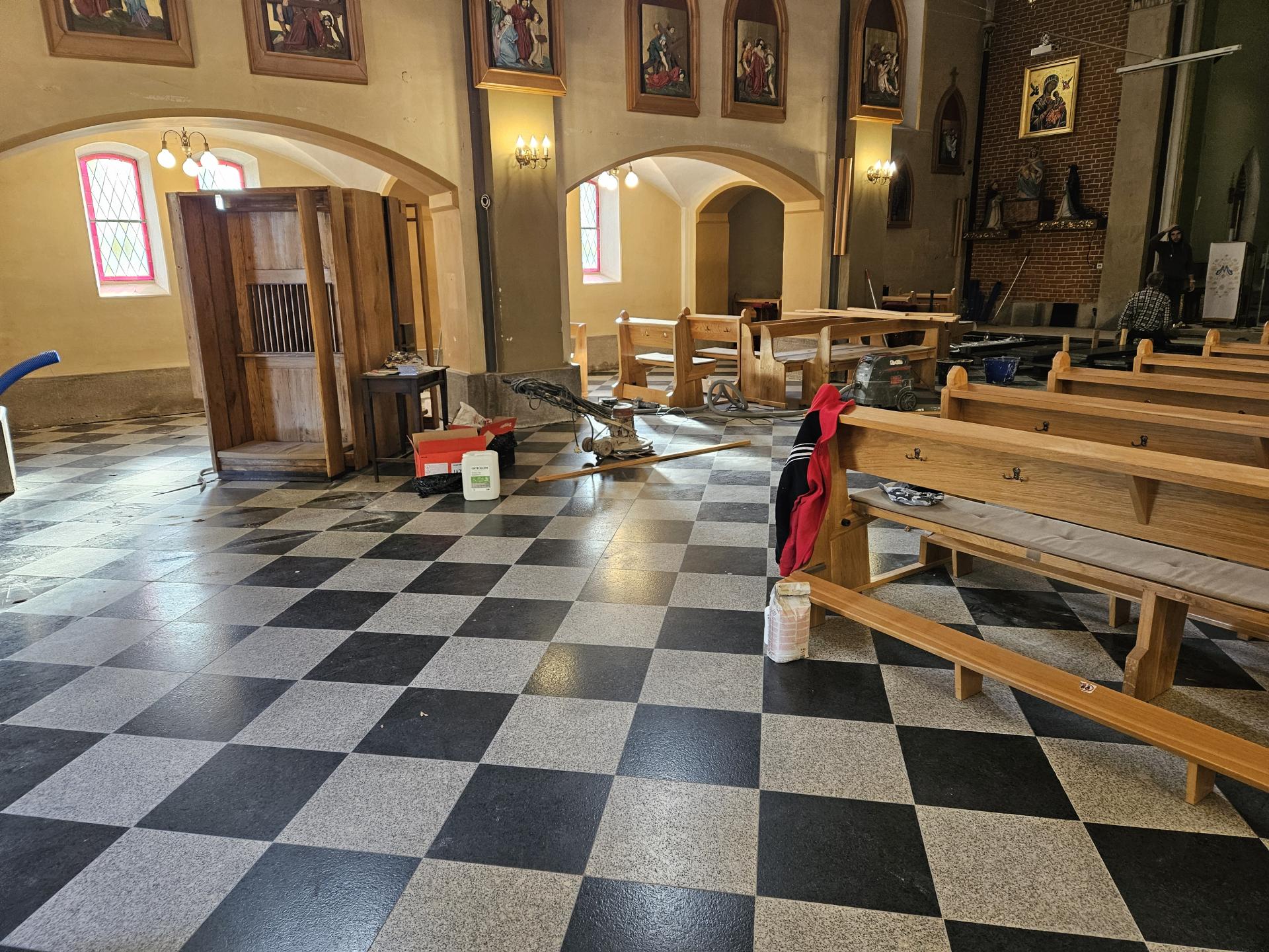 Prace polegały na wykonaniu I etapu wnętrza – usunięcie wtórnych bezstylowych posadzek w obrębie nawy, kruchty, prezbiterium, zakrystii oraz bocznej kapliczki.