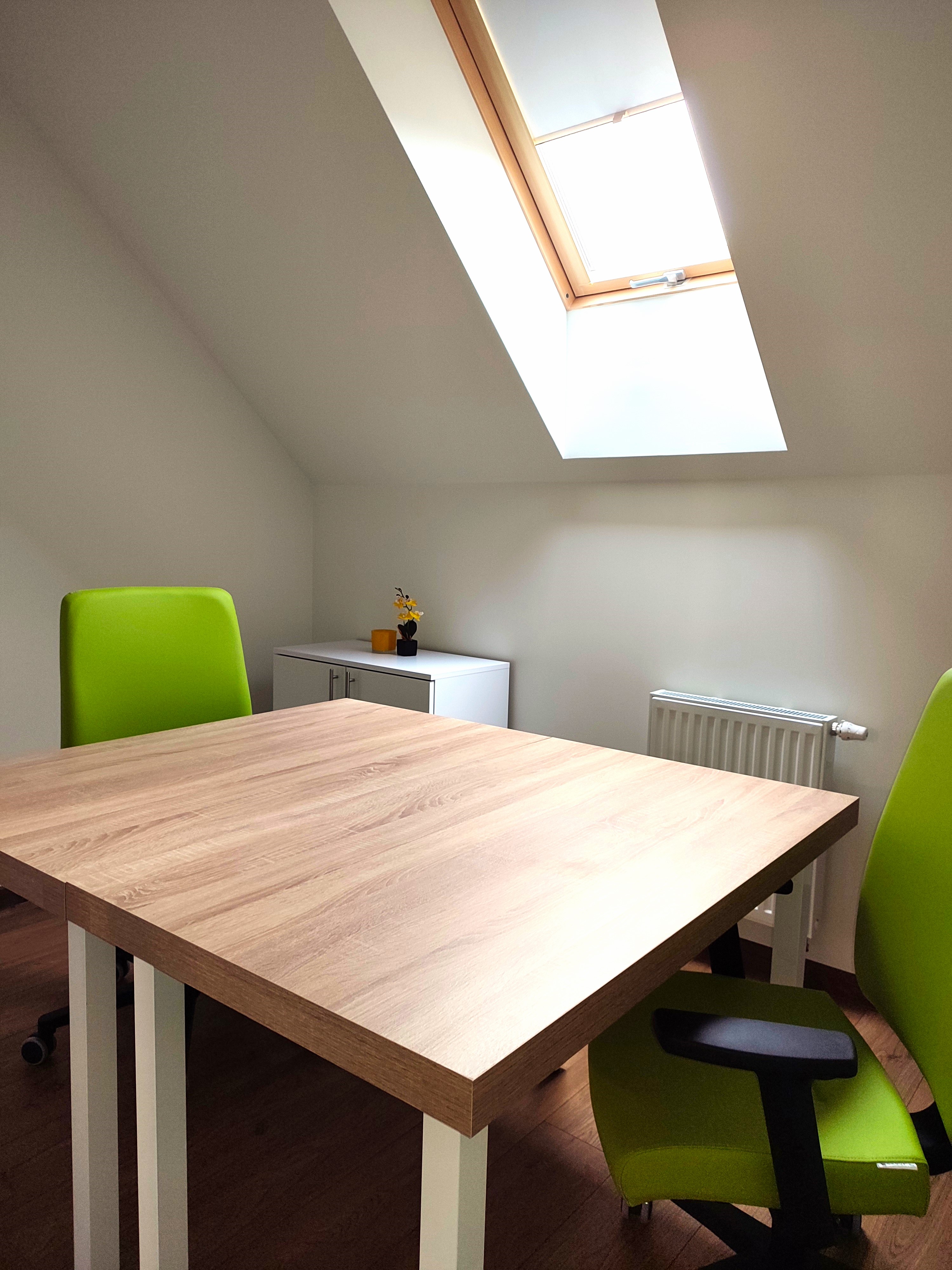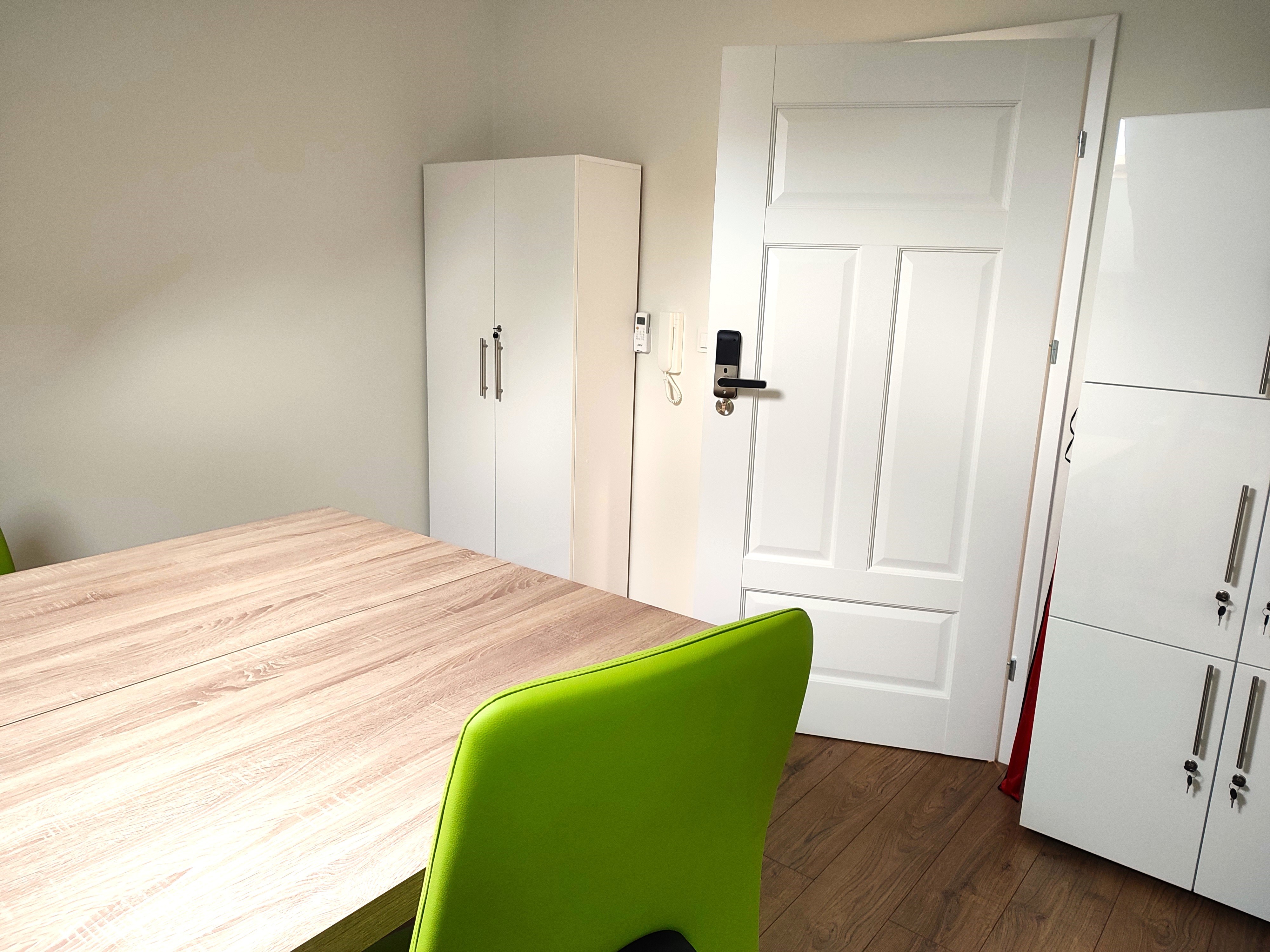 Pomieszczenie biurowe (3 osoby) – powierzchnia użytkowa 9,33 m2 wyposażone w 2 biurka, meble biurowe. Kalendarz rezerwacji pomieszczenia publikujemy poniżej.